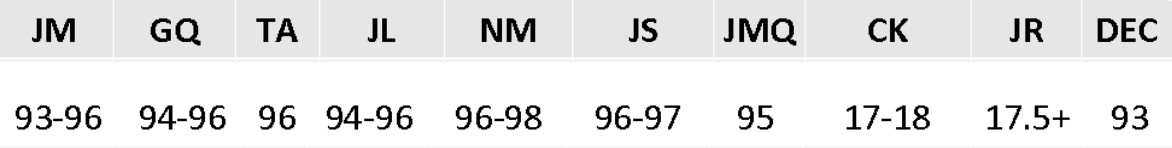 上圖為2015年份碧尚男爵酒莊紅葡萄酒獲得的評分,各字母縮寫所代表的意義如下: