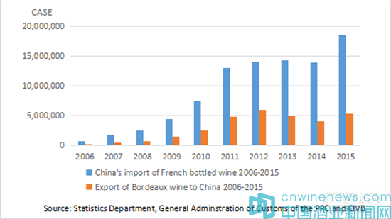 如果我們看一眼過去10年的法國葡萄酒進口數據就能發現,從2006年開始,法國葡萄酒進口數量的增長率基本保持在70%以上,最多的時候增長率甚至超過了100%。2006年法國葡萄酒的進口量為76萬箱,2007年就達到了172萬箱。但到了2012年,進口量的增速下降到了8%,而2013年的增速幾乎為0,而2014年更是開始下滑。而波爾多葡萄酒的進口則量則下降幅度更大,雖然2015年市場開始回暖,但前景仍然不容樂觀。