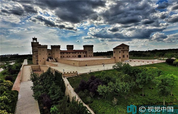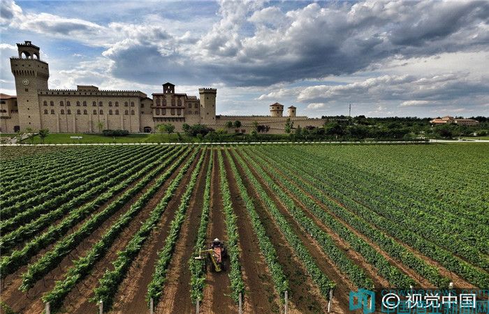 2016年6月15日,陜西咸陽(yáng),航拍張?jiān)H鹉浅潜ぞ魄f。 張?jiān)H鹉浅潜ぞ魄f是西咸陽(yáng)新區(qū)秦漢新城先期實(shí)施的都市農(nóng)業(yè)項(xiàng)目之一,按國(guó)家4A級(jí)旅游景區(qū)的標(biāo)準(zhǔn),采用了世界四大園林風(fēng)格之一的意大利托斯卡納建筑風(fēng)格。讓你不出國(guó)門就能領(lǐng)略純正、獨(dú)特的歐式風(fēng)情,感受沉浸在葡萄酒文化中享受生活的樂(lè)趣。
