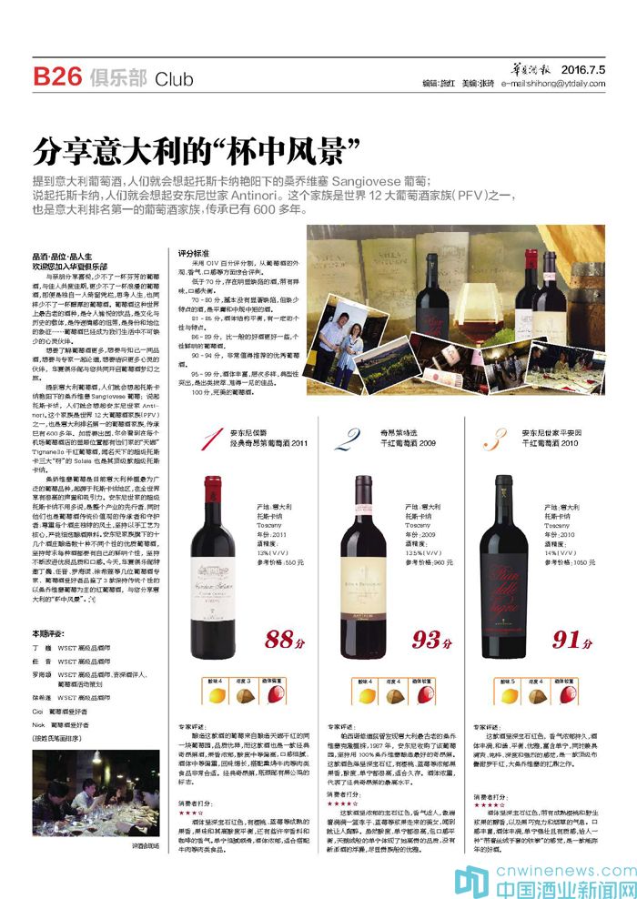 桑嬌維塞葡萄是目前意大利種植最為廣泛的葡萄品種,起源于托斯卡納地區(qū),在全世界享有很高的聲譽(yù)和吸引力。安東尼世家的超級(jí)托斯卡納不用多說(shuō),是整個(gè)產(chǎn)業(yè)的先行者,同時(shí)他們也是葡萄酒傳統(tǒng)價(jià)值觀的傳承者和守護(hù)者:尊重每個(gè)酒莊獨(dú)特的風(fēng)土,堅(jiān)持以手工藝為核心,嚴(yán)挑細(xì)選釀酒原料。安東尼家族旗下的十幾個(gè)酒莊釀造數(shù)十種不同個(gè)性的優(yōu)質(zhì)葡萄酒,堅(jiān)持苛求每種酒都要有自己的鮮明個(gè)性,堅(jiān)持不斷改進(jìn)優(yōu)良品質(zhì)和口感。今天,華夏俱樂(lè)部特邀丁巍、任音、羅海頌、徐希蓮等幾位葡萄酒專家、葡萄酒愛(ài)好者品鑒了3款保持傳統(tǒng)個(gè)性的以桑喬維塞葡萄為主的紅葡萄酒,與您分享意大利的“杯中風(fēng)景”。