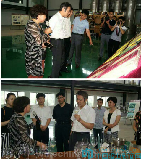 調(diào)研組先后參觀了民權(quán)九鼎發(fā)酵車間、釀酒車間、灌裝車間、產(chǎn)品榮譽等,詳細詢問了葡萄的種植、葡萄酒的生產(chǎn)工藝、質(zhì)量管理等工作。隨后,調(diào)研組一同品嘗了民權(quán)1958干白葡萄酒,并向徐瑞敏了解了葡萄酒的釀造、質(zhì)量管理及品評工作。