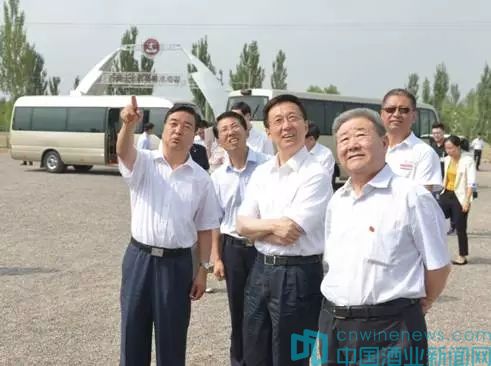 中央政治局委員、上海市委書記韓正(中)考察寧夏農墾葡萄產業