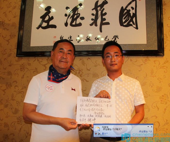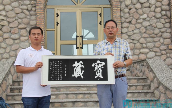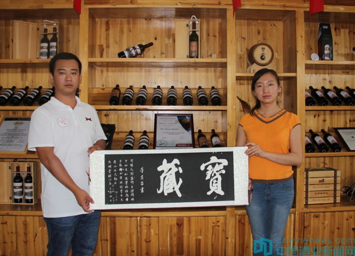 在走進和碩產區的過程中,北京市房山區葡萄種植及葡萄酒產業促進中心高宏超和北京國際酒類交易所金融部副總赫崢代表BRWSC組委會,向冠龍公司和國菲酒莊贈送了重走絲路活動錦旗及董其昌手書的“寶藏”拓本。