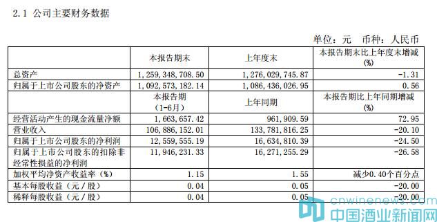 凈利潤下降24.5% 葡萄酒業務板塊未做詳細說明
