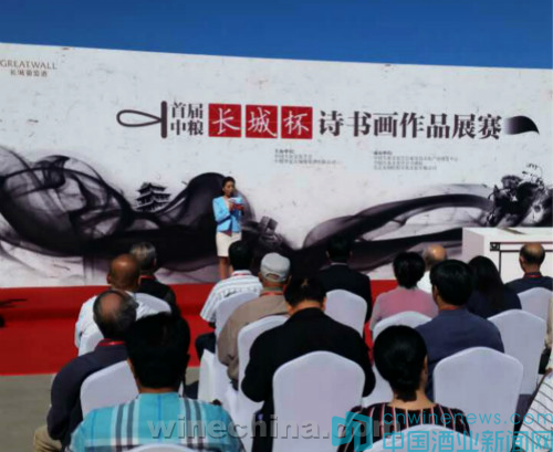 隨后,華夏酒莊總經(jīng)理陳小波發(fā)布講話,“勸君更盡一杯酒,與爾共筑中國夢”,華夏酒莊攜手中國大眾文化學(xué)會(huì)舉辦此次詩書畫展,旨在推動(dòng)中國詩書畫藝術(shù)的進(jìn)一步繁榮和發(fā)展,以詩書畫作品刻畫華夏酒莊的超脫和不凡。中糧華夏酒莊展廳內(nèi)匯集了20余位黨和國家領(lǐng)導(dǎo)人以及中外知名人士為華夏所留的墨寶真跡。置身于名酒展示廳,既領(lǐng)略了紅酒文化的深刻內(nèi)涵,又能目睹華夏悠遠(yuǎn)的紅酒文化。目前,華夏酒莊已成為擁有10億資產(chǎn)的農(nóng)業(yè)產(chǎn)業(yè)化、國家級重點(diǎn)龍頭企業(yè),歷經(jīng)做產(chǎn)品、做品牌、到現(xiàn)在做文化的發(fā)展階段。陳小波在致辭中指出,文化是民族的血脈,書畫是中國的國粹,長城是中華的象征。結(jié)合秦皇島市委市政府創(chuàng)建“詩詞之市”的工作實(shí)施方案,中糧集團(tuán)以書畫為契機(jī),舉辦了本屆中糧“長城杯”詩書畫作品展,以歌頌華夏長城、紅酒文化、海文化、秦皇島、北戴河、山海天等祖國大好河山為主題,根本目的是將葡萄美酒與詩書畫完美結(jié)合,宣傳、弘揚(yáng)中華民族的優(yōu)良傳統(tǒng)。