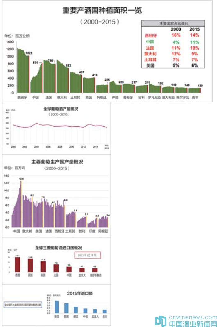 2015年,全球葡萄產量(包括各類用途)為7600萬噸。自2000年以來,雖然全球葡萄種植面積下降,葡萄產量卻一直保持著增長態(tài)勢,增長幅達17%。因此,產量的上升來自于葡萄種植技術的提高。