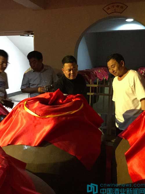 韓東董事長(zhǎng)與國(guó)務(wù)院津貼專家、中國(guó)白酒大師李克明教授在溫和酒業(yè)純糧酒窖實(shí)地研討原酒貯藏工藝