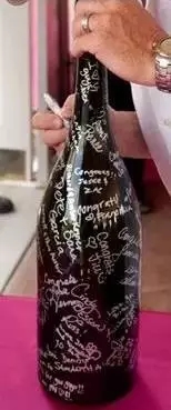 與其用一成不變的賓客留言本,還不如用一個(gè)大瓶裝的葡萄酒瓶,讓賓客把留言簽在瓶身上,之后再把這瓶葡萄酒保存起來(lái),留待以后某個(gè)特殊日子再打開,到時(shí)就可以重溫一下賓客們留下的美好祝福。