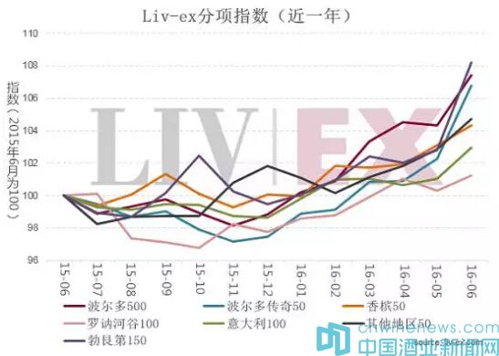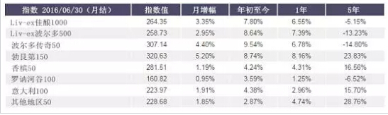 同時(shí),6月份波爾多500(Bordeaux 500)指數(shù)也有所上升,升幅高達(dá)3%,是自2011年2月以來的最大單月漲幅。