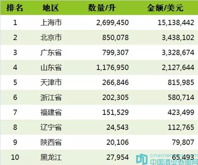 2、10大進口瓶裝葡萄酒貿易地區