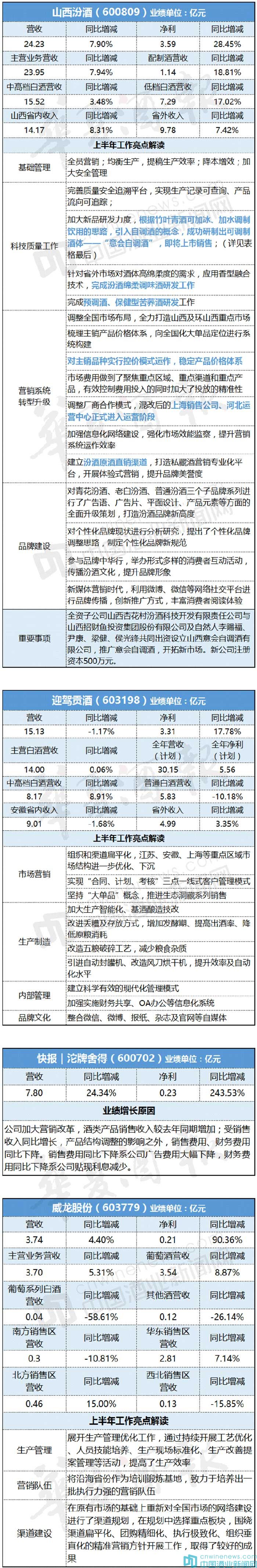 一張圖看懂 汾酒、迎駕、沱牌、威龍 2016上半年成績單