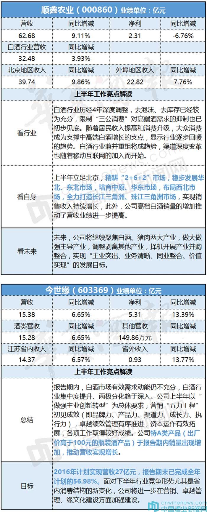 一張圖看懂順鑫農業(yè)、今世緣半年成績單