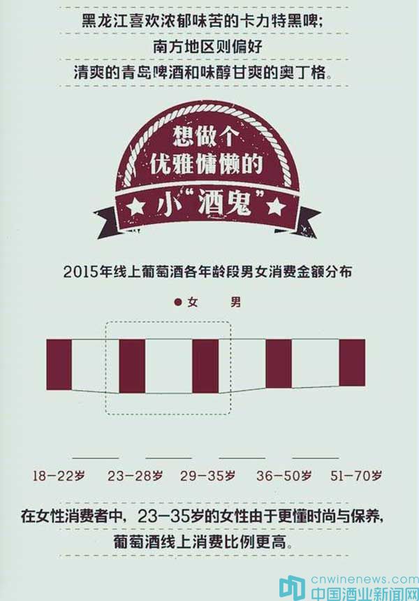 如果從不同地域劃分,中國酒水消費呈現出顯著地理特色。經濟發展較快的沿海地區,偏好葡萄酒;中西部地區獨愛白酒;北方地區是國內葡萄酒和啤酒的重要生產區域,消費熱情高漲。