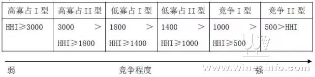 注:赫芬達(dá)爾—赫希曼指數(shù)(HHI指數(shù))是衡量市場壟斷/競爭程度的指數(shù),數(shù)值區(qū)間在10000≥HHI>0之間。一般情況下該指數(shù)數(shù)值越低,則市場競爭程度越高,一般分為六個(gè)檔次: