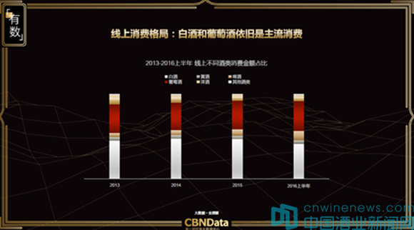 《報告》顯示,線上酒水銷售主要分為白酒、葡萄酒、啤酒、黃酒、洋酒。其中,葡萄酒和白酒占到了絕大多數的比重。啤酒現階段消費金額比例雖小,但漲幅明顯。