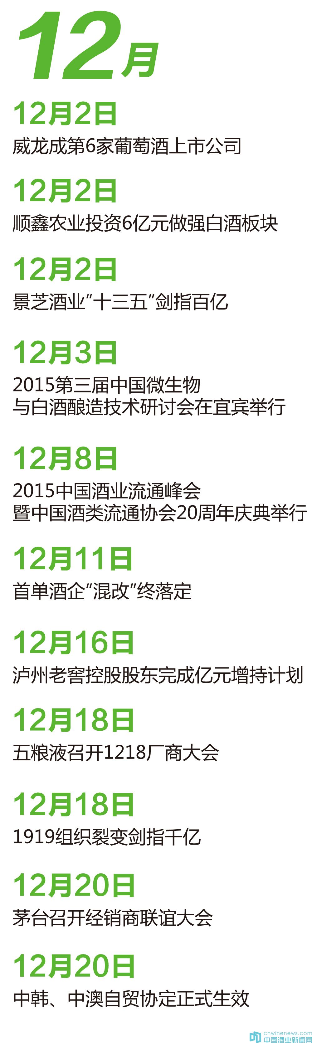 酒行業在2015年全面開啟責任戰略,酒與社會責任促進聯盟正式成立,舉行業之力,行社會責任,首個“全國理性飲酒日”啟動,使“理性文明,拒絕酒駕”成為一種社會風尚;這一年,酒業更加關注消費者的需求,除了產品價位的調整,讓更多人能夠喝到高品質的好酒,還大膽融合了更多時代元素,使酒類產品更具多彩魅力,酒類品牌煥發出鮮活的氣息;這一年,酒業調整更加關注行業本質,追溯酒的價值源頭,“黃淮名酒行”活動將白酒產區化發展推升至新的高度,以產區的生態特征、文化傳承、工藝特色和品質個性構建新的白酒價值體系,為酒業發展開拓了新的格局。