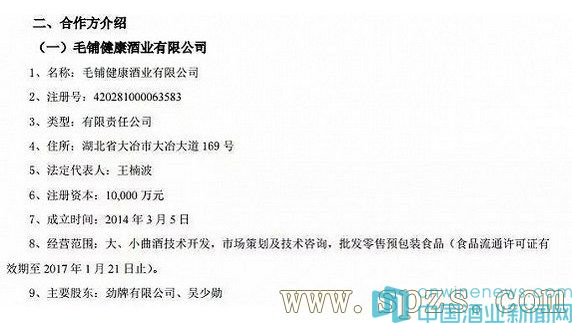 這是勁酒公開在資本市場上不多的亮相。上述公告顯示,毛鋪健康酒業法定代表人為王楠波,注冊資本1億元,主要股東是勁牌有限公司、吳少勛。西藏天麥力健康品有限公司則是甘肅奇正實業集團有限公司旗下公司。
