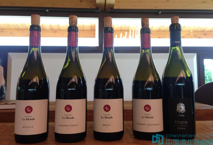 Le Monde酒莊的設計很匠心獨運,由年輕莊主Alex Maccan與他的夫人及好朋友一起設計。品酒室明亮新穎,四面風景秀麗,里面的凳子全由橡木做成。而地下酒窖則顯得特別典雅別致。釀酒師對酒莊酒的定位是“簡單地優雅”。在品嘗這些酒時,記者覺得好多都很清新純凈,不復雜但平衡雅致,不需花很多心思去細究,其風味就一一展現出來,就像是很多男人都喜歡的那種年輕漂亮、純真但不失精致的女子,特別是其中的兩款精致和諧的品麗珠和萊弗斯科(Refosco)紅葡萄酒。