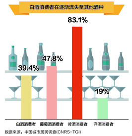 白酒一度被贊譽為國粹,但也正因為如此,才有了年輕消費者斷層的擔憂。從酒類市場的實際狀況來看,白酒偏好傳統、偏好突出傳承的特點一方面成就其國粹地位,另一方面則成為其消費斷層隱憂的來源。
