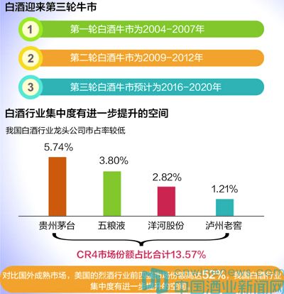 2015年和2016年一季度白酒市場表現良好,再加之經歷了新一輪的漲價潮,有機構研究表示,未來行業仍將在消費升級驅動中高檔市場的擴容以及行業的收購兼并提供的動力中繼續增長。