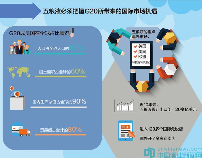 二十國集團成員國經濟總量占全球經濟總量的80%,因此,二十國集團如果能夠不斷完善國際貨幣金融體系,優化國際金融機構治理結構,充分發揮國際貨幣基金組織特別提款權作用,不斷完善全球金融安全網,加強在金融監管、國際稅收、反腐敗領域的合作,提高世界經濟抗風險能力,從而重構一個開放型的世界經濟,繼續推動貿易和投資自由化、便利化,恪守不采取新的保護主義措施的承諾,加強投資政策協調合作,采取切實行動促進貿易增長,幫助發展中國家和中小企業深入參與全球價值鏈,推動全球經濟進一步開放、交流、融合,那么,就可以為五糧液走好國際化市場道路營造一個良好的市場環境、海外貿易環境。這是一個千載難逢且必須把握的機遇。