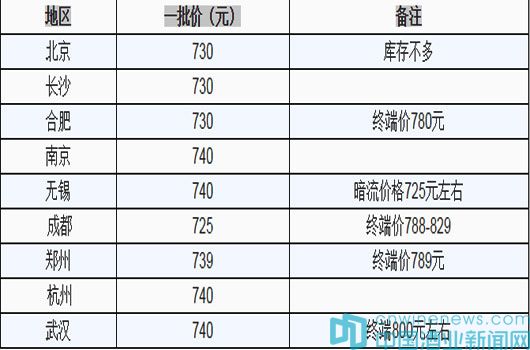 “廠家要求我們的報價在745-750元。”無錫的經(jīng)銷商透露現(xiàn)在廠家蘇南片區(qū)的一批價有要求,目前無錫和南京的一批價都是740元。