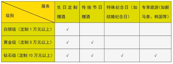 3、定制后服務模式:納入會員制、分級管理、積分階段性兌獎;列為企業特約品鑒顧問,可作為嘉賓參與企業大型活動;享受企業節慶福利,如贈酒、紅包、優惠、旅游等;
