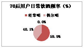 1、70后消費者有近60%的人經常喝酒,具有飲酒習慣的人比例較高。