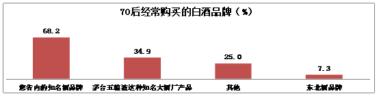 2、70后消費者購買省內酒品牌的比例最高,其次是國內知名品牌。