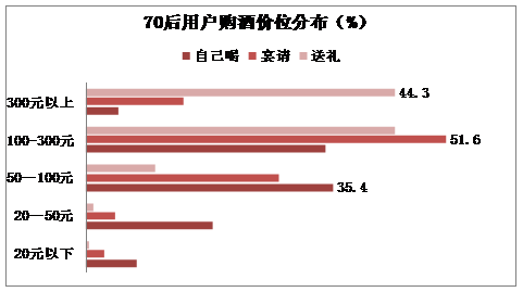 5、70后消費者在白酒消費方面對自己節省,對外人大方。