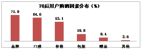 第二,白酒廠商必須十分注意品牌力的打造。調查顯示,無論是選擇產品還是選擇購買的場所,品牌的因素都是最大的,70后消費者喜歡喝國內或省內的知名品牌,找熟悉的經銷商購買產品也占到一半以上,這都說明了品牌知名度或經銷商知名度的極端重要性。喝酒看牌子,買酒看牌子,在70后成熟的消費群體中已經是共識。