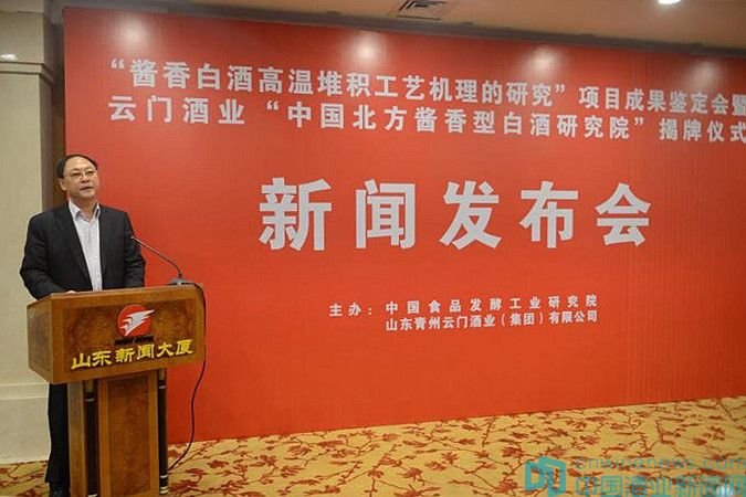 4月28日,“醬香白酒高溫堆積工藝機(jī)理的研究”項(xiàng)目成果鑒定會(huì)暨云門酒業(yè)“中國(guó)北方醬香型白酒研究院”揭牌儀式新聞發(fā)布會(huì)在山東新聞大廈舉行。中國(guó)北方醬香型白酒研究院由中國(guó)食品發(fā)酵工業(yè)研究院和山東青州云門酒業(yè)(集團(tuán))有限公司共同發(fā)起設(shè)立,以研究提升北方醬香白酒質(zhì)量為目標(biāo),堅(jiān)持品牌創(chuàng)新、科技創(chuàng)新、工藝創(chuàng)新,不斷優(yōu)化發(fā)展云門醬香酒健康價(jià)值體系。