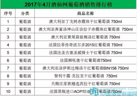在4月酒仙網(wǎng)葡萄酒銷售排行榜中,共入榜澳大利亞葡萄酒5款、法國葡萄酒4款、智利葡萄酒1款,澳大利亞葡萄酒與法國葡萄酒平分秋色,甚至領(lǐng)先一個(gè)產(chǎn)品,與當(dāng)前澳大利亞葡萄酒在國內(nèi)市場的快速增長相印證。