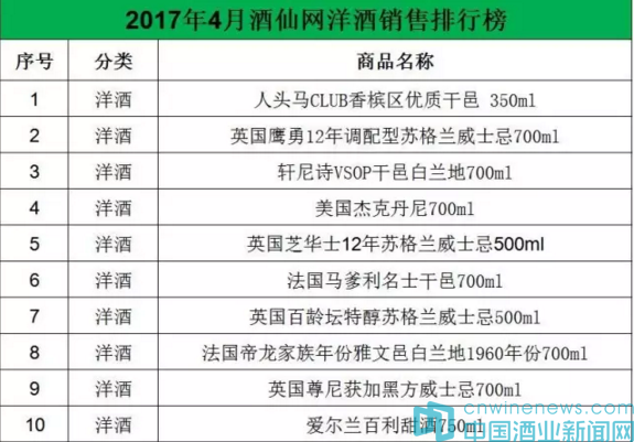 此外,與3月份榜單相比,在往期榜單中曾經(jīng)入選的愛爾蘭百利甜酒750ml入榜,居第十的位置。