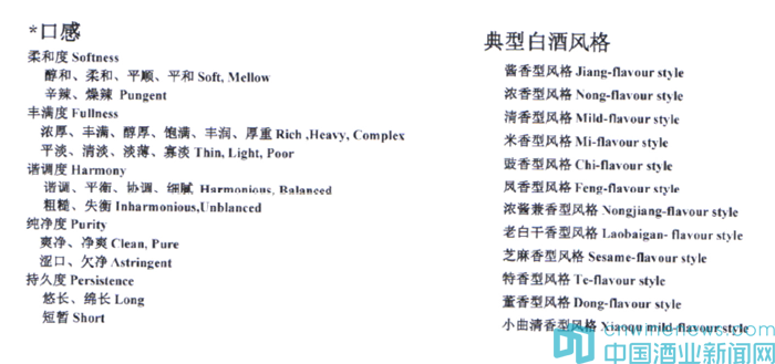 其中,白酒感官品評術語標準規定了白酒感官的一般性術語、與分析方法有關的術語以及與感官特性有關的術語。記者閱讀發現,對我國白酒典型風格的英文翻譯,大多采用了拼音。