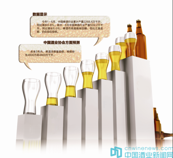 數(shù)據(jù)顯示,今年1~6月,中國(guó)啤酒行業(yè)累計(jì)產(chǎn)量2268.6萬(wàn)千升,同比增長(zhǎng)0.8%。其中,6月中國(guó)啤酒行業(yè)產(chǎn)量509.2萬(wàn)千升,同比增長(zhǎng)6.0%。啤酒市場(chǎng)雖略有回暖,但比之黃金期,仍在低位徘徊。