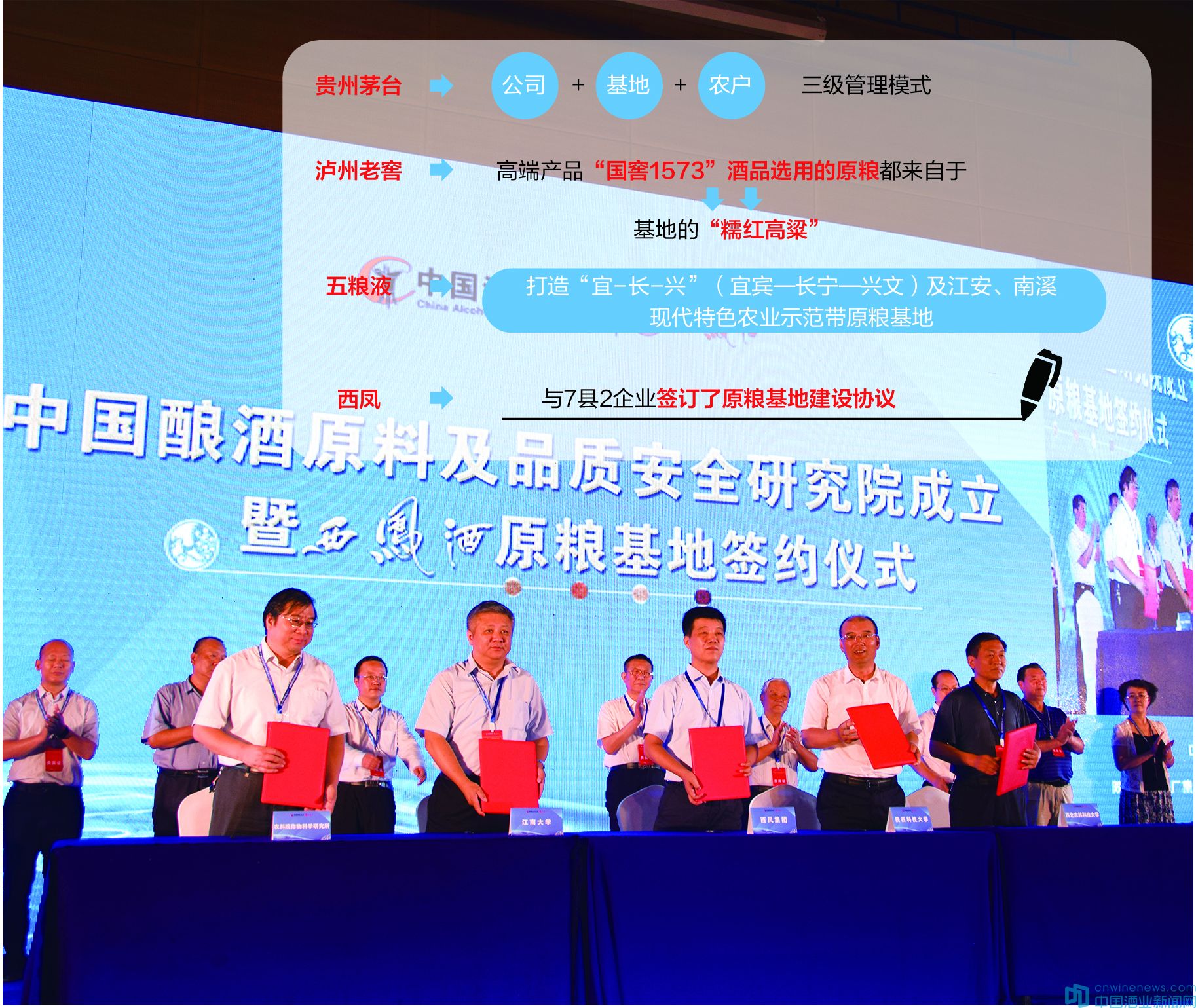 值得注意的是,在宣布正式啟動釀酒原糧基地建設的同時,另一個與酒類品質安全息息相關的機構也同時成立——會上陜西西鳳酒廠集團有限公司與中國農業科學院作物科學研究所、西北農林科技大學、江南大學、陜西科技大學簽訂了“中國釀酒原料及品質安全研究院”組建協議。