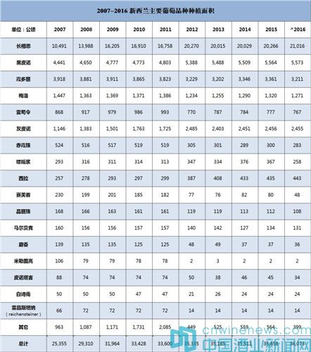 2、2016年新西蘭葡萄酒種植面積及產(chǎn)量