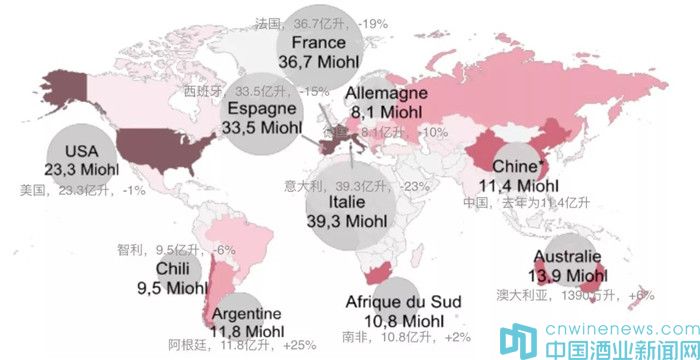 至于葡萄牙(6.6億升)、羅馬尼亞(5.3億升)、匈牙利(2.9億升)和奧地利(2.4億升)是歐洲僅有幾個產量出現小幅上漲的國家。