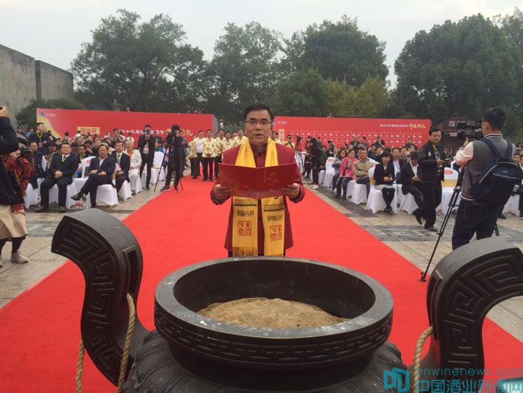 開釀典禮上,舉行了隆重的“祭酒神”儀式。敬獻祭品、恭請酒神后,中國酒業協會黃酒分會理事長、紹興市黃酒行業協會會長傅建偉誦讀祭文。祭文描述了“黃酒之都,唯吾紹邑。壺酒興邦,千古史跡。曲水流觴,書圣醉書。船頭懸壺,劍南詩傳……”的酒鄉風情,表達了“千億目標,藍圖繪成”的決心與信心。隨后,傅建偉攜14家黃酒企業代表上香祭拜酒神,共同宣誓“做誠實人,釀良心酒”。