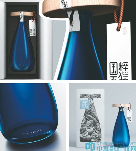 在材質方面,采用玻璃與木材相結合的組合方式,將產品名稱以及相關信息采用垂掛的方式與瓶頭相結合,以確保酒體盡可能大限度地展現其通透感。
