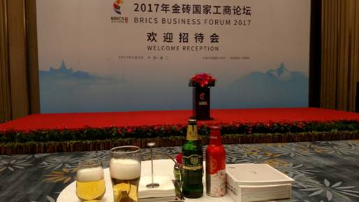 一地一景、一草一木,一道菜、一杯酒,東道主為金磚國家代表準備的各種中國式驚艷,都成為表達友誼和展示中國力量的載體。在金磚國家工商論壇歡迎招待會上,除了豐富多彩的舌尖上的美食外,前來參會海外嘉賓也遇到了在國外也非常熟悉的“老朋友”——青島啤酒。