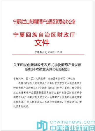 WBO獲悉,而上述展示中心的建立其實源于一份由寧夏賀蘭山東麓葡萄酒產(chǎn)業(yè)園區(qū)管委會辦公室與寧夏回族自治區(qū)財政廳聯(lián)合下發(fā)的文件——《關于印發(fā)創(chuàng)新財政支農(nóng)方式加快葡萄酒產(chǎn)業(yè)發(fā)展的扶持政策暨實施辦法的通知》。