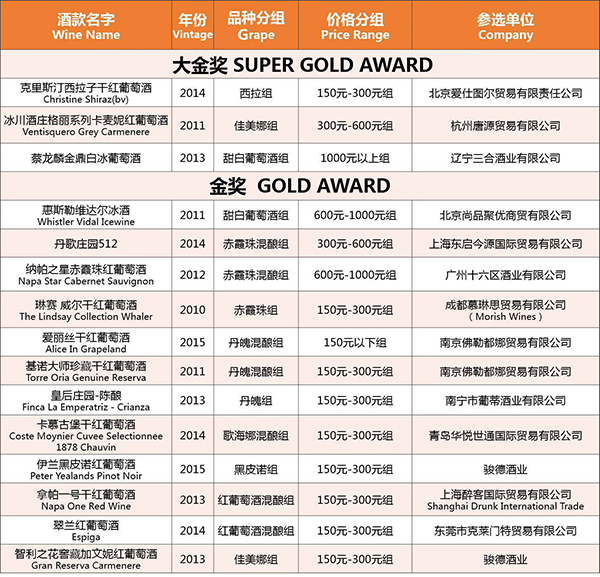 本次大賽獲得來(lái)自20多個(gè)國(guó)家,共計(jì)1000多款葡萄酒的報(bào)名,實(shí)際參賽酒款為928款。經(jīng)過16位專家評(píng)委三天的專業(yè)品鑒,選出了230款獲獎(jiǎng)酒款,其中大金獎(jiǎng)3款,金獎(jiǎng)23款,銀獎(jiǎng)73款和優(yōu)選獎(jiǎng)131款。