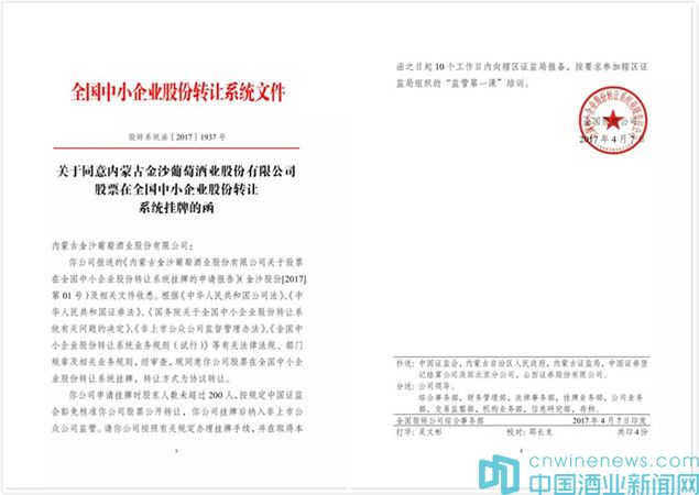 以夢為馬,不負韶華;不忘初心,方得始終。金沙股份“新三板”上市成功,對公司的發展而言是邁出堅實的又一步,也奏響了公司走向資本市場的新篇章!這是全新的起點,公司將迎來更為廣闊的平臺和更好的發展機遇。通過此次掛牌,可進一步拓寬公司的融資渠道,提高品牌知名度,延伸產業鏈合作。同時,這也為規范公司治理,提升核心競爭力,更好地參與資本市場奠定了良好的基礎。展望未來,公司將致力于打造西部沙漠有機葡萄酒價值典范,不斷提升產品品質,加強內部管理,承擔更多的社會責任,為成就新時期的輝煌而不懈努力!