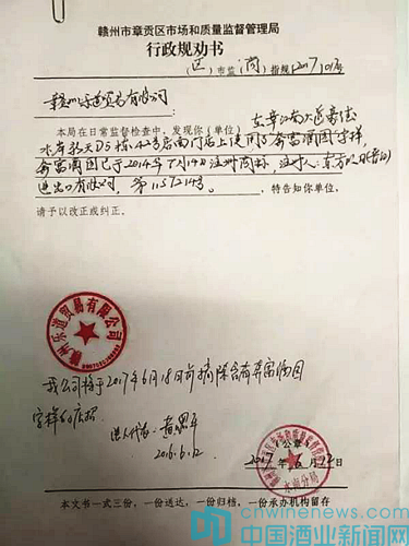 近日,記者從奔富股份打假部門獲悉,經過與當地工商管理部門的聯合行動,江西省贛州市對一家非法侵犯“奔富酒園RUSH RlCH”知識產權的企業開出了一張侵權的罰單(詳見處罰書)。這表明“奔富酒園”以法律手段來維護品牌形象和知識產權取得又一成果。