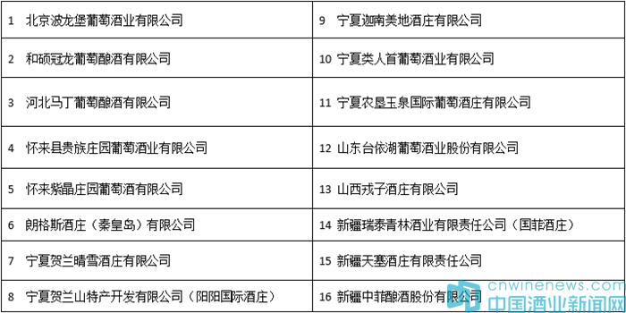 獲得葡萄酒酒莊酒證明商標(biāo)使用授權(quán)的企業(yè)名單: