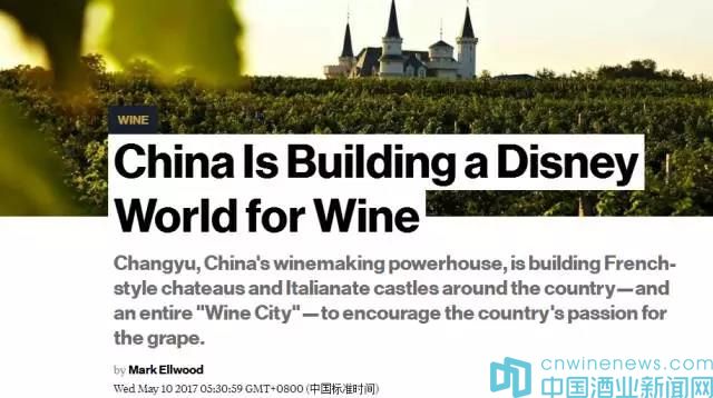 2017年4月,美國彭博新聞社記者馬克•埃爾伍德在游覽完張裕國際葡萄酒城后,撰寫了題為《中國正在打造一個“葡萄酒的迪士尼世界”》的報道,報道稱:“張裕,中國的葡萄酒生產巨頭,正在興建法國風格的酒莊和意大利風格的城堡,以及一座整體的‘葡萄酒城’,以激發(fā)這個國家對葡萄的熱情。”