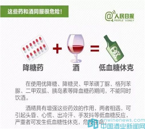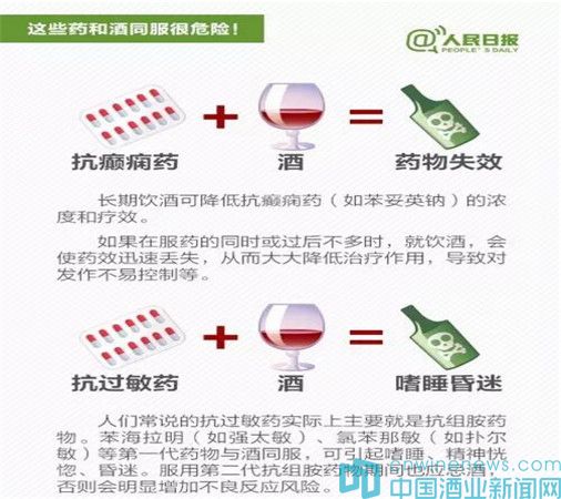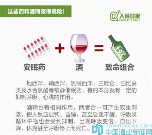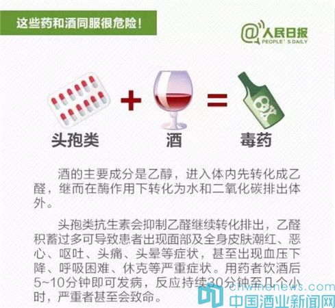 據“人民日報”新媒體消息,春節將至,飲酒助興在所難免。但喝酒不注意,和一些藥物同時服用,容易出大問題:①感冒藥+酒:增加肝臟衰竭風險;②頭孢類抗生素+酒:嚴重將致命;③解熱鎮痛藥+酒:可能引起消化道出血;④安眠藥+酒:恐致命……吃這些藥時千萬不能喝酒。