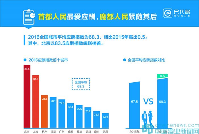 到底哪座城市的人最愛(ài)應(yīng)酬?如何為“應(yīng)酬達(dá)人”畫(huà)像?一頓應(yīng)酬大致需要花費(fèi)多少錢(qián)?人們不愿應(yīng)酬的原因又是什么?大家每月要花多少時(shí)間在應(yīng)酬之上?……該報(bào)告不僅能夠使我們一窺國(guó)內(nèi)2016餐飲業(yè)和酒水行業(yè)的經(jīng)營(yíng)狀況,同時(shí)也提醒更多消費(fèi)者在飲酒的同時(shí)關(guān)注安全與健康。畢竟,良好的應(yīng)酬習(xí)慣才能夠讓我們?cè)诮】抵性鲞M(jìn)彼此之間的感情。話不多說(shuō),酒報(bào)君這就帶您全面梳理這份報(bào)告。